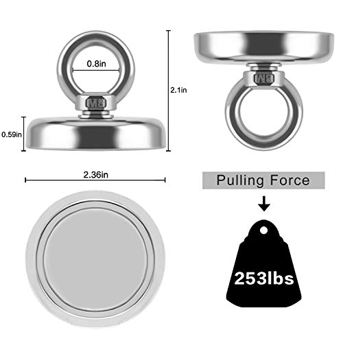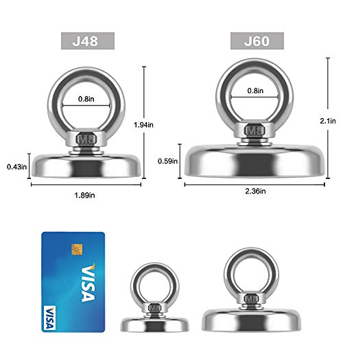 Magnete al neodimio con occhielli, super forte per la pesca magnetica (C60 + rope + guanti)