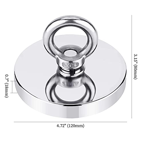Magnete da pesca con una forza di trazione di 680 kg, per pesca con magnete, kit per pesca con magnete super forte con custodia, magneti da pesca rotondi con occhiello al neodimio per recuperi in fiume, 120 mm di diametro
