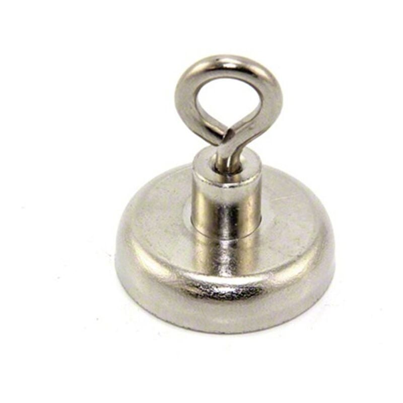 32 mm diametro x 38 mm altezza Il diametro interno dell' occhiello è pari a 8 mm e 26 mm dalla punta all' inizio della filettatura. Tolleranza +/-0.1 mm Ciascun magnete ha una capacità di carico massima di 36.4 kg in verticale se il lato magnetico è completamente in contatto con una superficie d' acciaio di pari spessore A occhiello removibili con filettatura M4