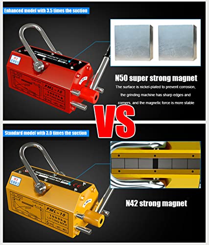 Capacità di sollevamento: questo magnete di sollevamento può sollevare carichi di 100/200/400/600 kg (220/440/880/1320 libbre). È abbastanza sicuro da assorbire tipi di lamiera d'acciaio. Utilizza il grande magnete completo e il sistema magnetico avanzato, la forza magnetica è molto forte, Temperatura di esercizio: < = 80 ℃.