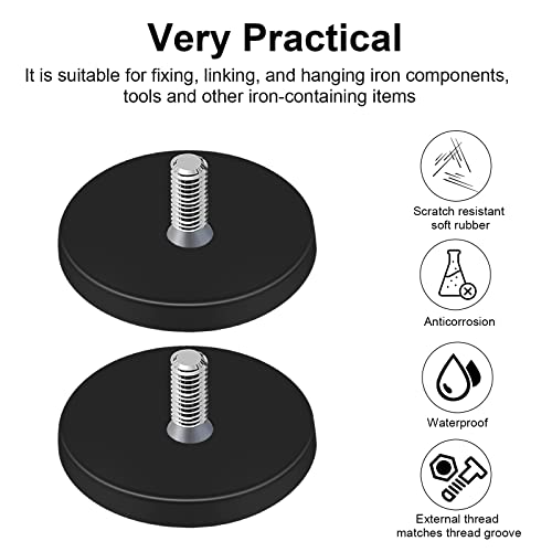 Magneti al neodimio gommati, diametro 43 mm, disco magnetico in gomma, con filettatura esterna M6, con guaina in gomma, 8,5 kg, forza adesiva