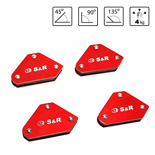 S&R Magneti per Saldatura. Set 4 Mini magneti 58 x 50 mm con angolo 45°, 90°, 135°, Rossi