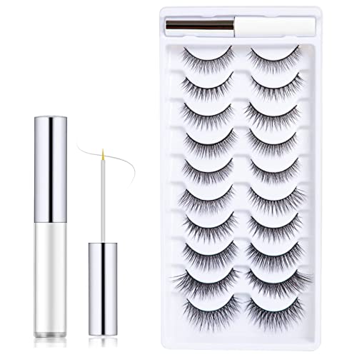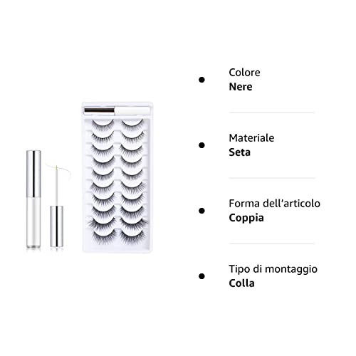 Colla per ciglia finte offerta: Siamo un marchio con temperatura. Questo kit di ciglia finte contiene una colla per ciglia finte trasparente, abbastanza da usare per 2-3 settimane. E 10 paia di ciglia finte di alta qualità accuratamente realizzati e selezionati da noi.