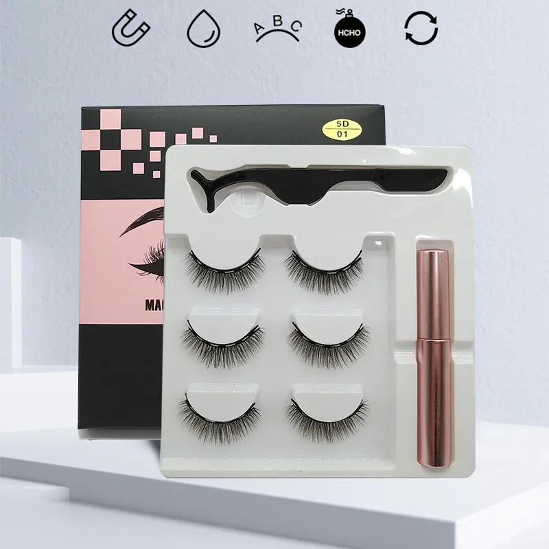 Magnetic False Eyelashes Set No Glue Full Eyes 5 Magnet Reusable Fake Eye Lashes Natural Soft Extension Eyelash Kit