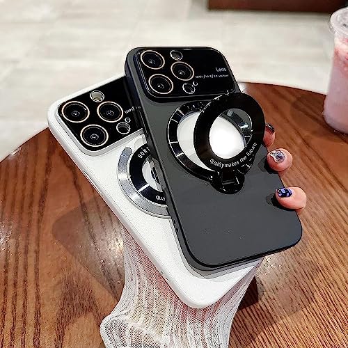 Magnetic Foldable Stand Case Cover for iPhone 14 13 12 Pro Max,Tempered Glass Explosion Proof Wide Window PC Case with Lens Protector,Ultra-Thin,Shockproof,Built-In Dust Net. (14 ProMax, White)