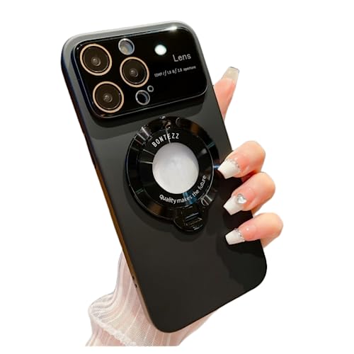 Magnetic Foldable Stand Case Cover for iPhone 14 13 12 pro max, Wide Window PC Case with Lens Protector, Anti-Fingerprint Camera Protection Ultra-Thin Case. (for iPhone 14, Black)
