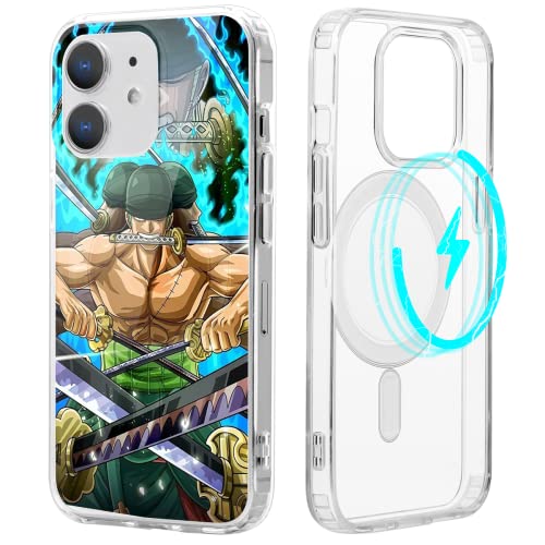 Magnetica Cover per Apple iPhone 13/iPhone 14 6.1'' Compatibile con MagSafe Custodia con Anime Zoro Silicone TPU e PC Wireless Antiurto Protettivo Cover, Trasparente14