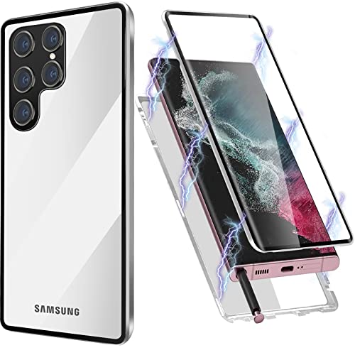 Magnetica Cover Galaxy S22 Ultra, 360 Gradi Adsorbimento Magnetica Custodia Anteriore Posteriore Vetro Temperato, Full Protezione Custodia Protettiva Compatibile con Samsung Galaxy S22 Ultra Argento