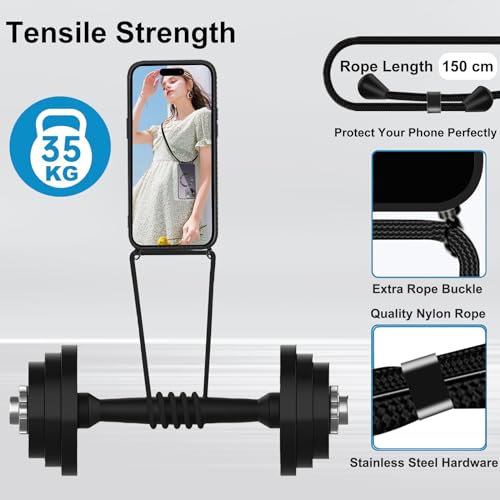 【Magnetica Custodia Cordino】: Custodia Cordino per iPhone 15 Pro Max con cerchio magnetico integrato. JOFUN combina una forte tecnologia magnetica con un cordino. La compatibilità con iPhone 15 Pro Max consente di collegare facilmente tutti gli accessori MagSafe. 1,5 m Laccio regolabile e pratico, Non assorbe l'umidità ed è resistente alla polvere e durevole, facendo risaltare il tuo telefono.
