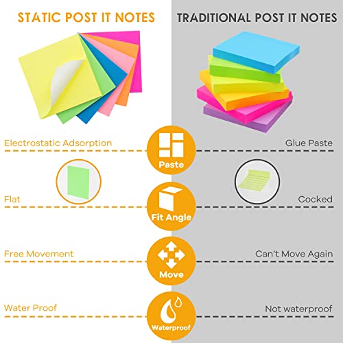 Note magnetiche, note adesive statiche, 76 x 76 mm, 480 fogli blocco note elettrostatiche, mobili e scorrevoli su qualsiasi superficie (multicolore)