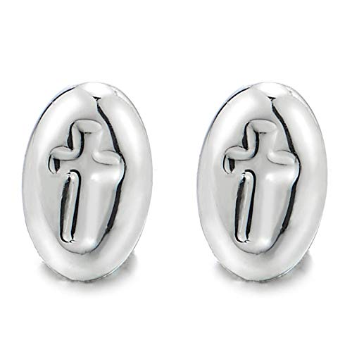 Magnetico Concavo Croce Ovale Orecchini da Uomo Donna, Click-on Fake Piercing, Finto Dilatatore Fake Plug