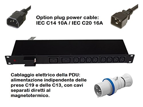 PDU 1U 19" - 2 C19 + 8 C13 con MAGNETOTERMICO - 16Amper 230V