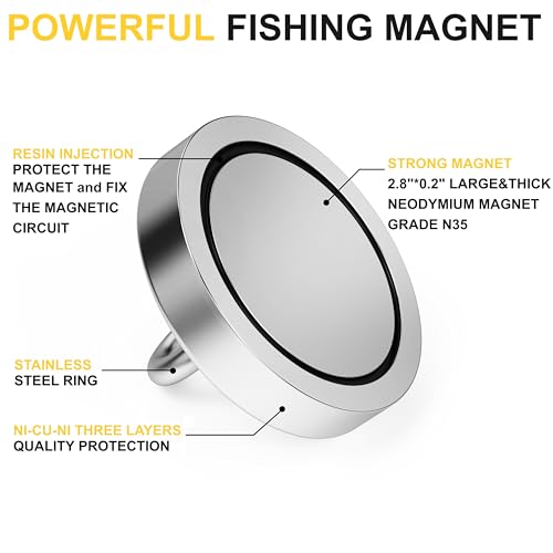 Grande magnete per pesca, sollevamento, appendere e tenere. Divertiti a cercare tesori perduti in fiumi, laghi, fontane, canali o piscine. Può essere utilizzato anche come supporto in garage per riporre attrezzi da giardino, barriere, ganci o altre cose, ovunque sia necessario un magnete incredibilmente forte.