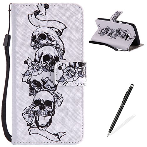 MAGQI Compatible with Caso Samsung Galaxy J5(2017)/J520 Elegante Pelle Sintetica Portafoglio Copri Ribalta Chiusura Magnetica Funzione dello Stand Protettivo Impermeabile Cover - Cranio Rosa