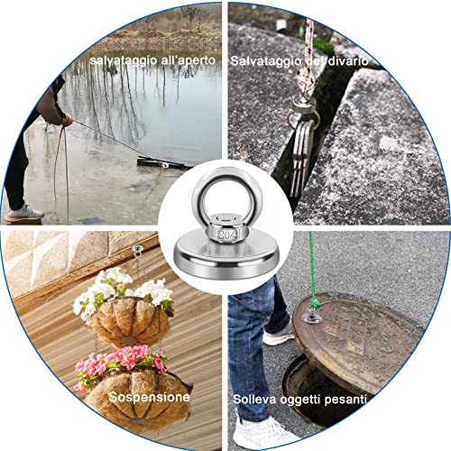 Grande magnete per la pesca, sollevamento, appendere e tenere. Godetevi trovare tesori perduti in fiumi, laghi, fontane, canali o piscine. Può anche essere utilizzato come supporto in garage per riporre attrezzi da giardinaggio, ostacoli, ganci o altri oggetti. Non importa dove ti trovi, hai bisogno di un magnete molto potente.