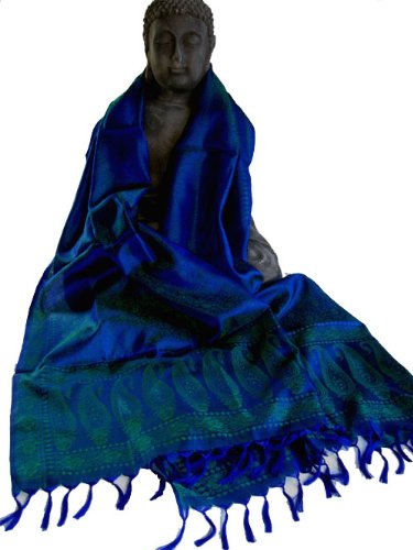 Maharanis - Sciarpa di seta jacquard 100% seta blu verde 55 cm x 180 cm