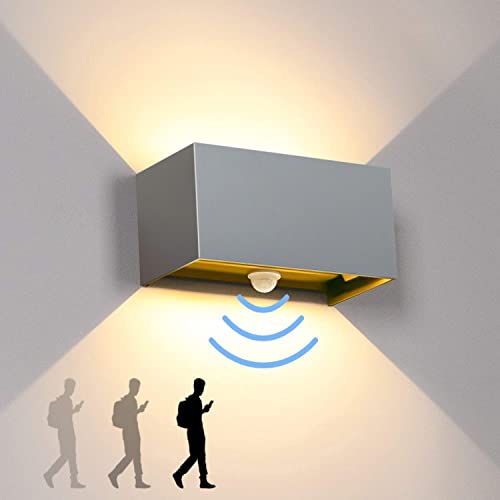 MAHGOUB LED Applique da Parete con Sensore di Movimento,24W Lampada da Parete LED Bianca Caldo Moderno 2700K-3000K IP65 Impermeabile Angolo del Fascio Regolabile per Soggiorno, Portico, Bagno(grigio)