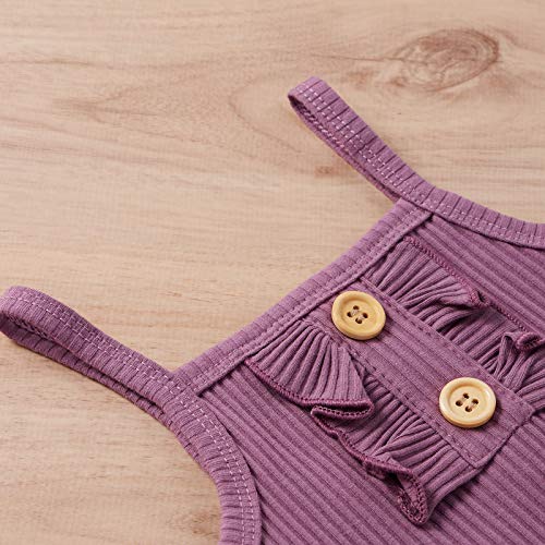 MAHUAOYIXI Pagliacetto Senza Maniche con Spalline Sottili per Neonati Bambina+ Mutandina a Volant Abiti Tutina Neonata Pigiama a Costine a Righe Estate (Viola, 18-24 Mesi)