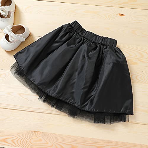 MAHUAOYIXI 2 Pezzi Set di Vestiti Ragazza Camicia a Maniche Lunghe con Stampa Quadro Nero e Rosso+ Gonna Nera Corta Principessa Ragazza Elegante Abito Casual Autunno Festa (Nero Rosso, 12-18 Mesi)