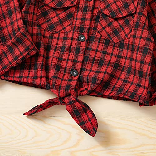 Design: camicia a maniche lunghe con stampa a quadri rossi con gonna nera semplice sembra bella ed elegante, rendendo il tuo bambino alla moda e carino.