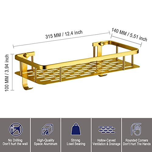 Maifey Mensola Bagno da Muro, Mensola Doccia Senza Foratura Portaoggetti Doccia in Metallo con 2 Ganci, Mensole Doccia Adesiva a Parete, Antiruggine (1 Cestino, Oro)