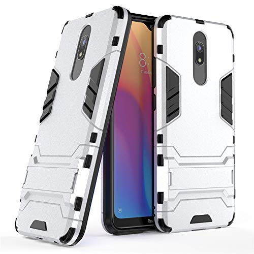 MaiJin Cover per Xiaomi Redmi 8 / Redmi 8A (6,22 Pollici) 2 in 1 Hybrid Dual Layer Completamente Shock Resistente Armour con Cavalletto Funzione Custodia (Argento)