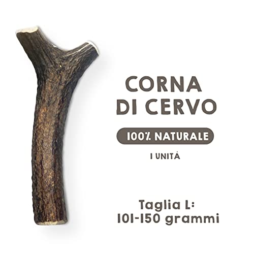 OGNI PEZZO E UNICO. Dato che le corna sono un prodotto naturale al 100%, possono variare in forma, colore e densità, quindi sono vendute a peso e non a lunghezza. Taglia L: 100-150 grammi