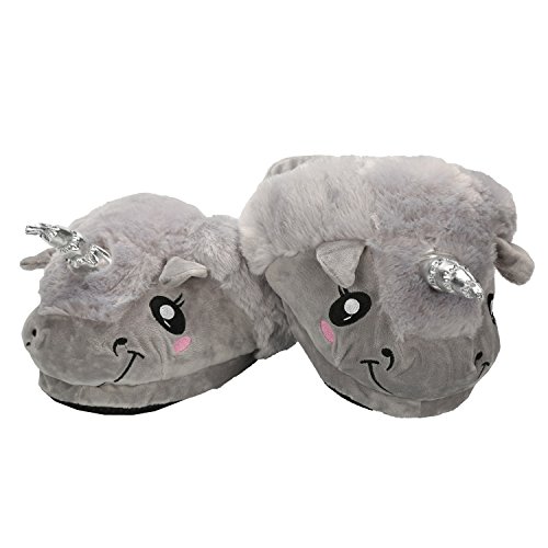 Très Chic Mailanda Adulti Calde Pantofole di Peluche a Disegno Unicorno (One Size, Grigio)