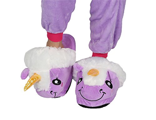Très Chic Mailanda Adulti Calde Pantofole di Peluche a Disegno Unicorno (One Size, Viola e bianco)