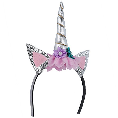 Très Chic Mailanda Cerchietti per Capelli Unicorno Cosplay Costumi Fasce per Capelli e Fascia dell'orecchio del Gatto Ragazzo e Ragazza (Argento)