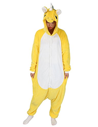 Très Chic Mailanda Pigiama Donna Uomo Animale Cosplay Animato Costume Camicie da Notte Carnevale Halloween (M per Altezza 158-168cm, Giallo Unicorno)