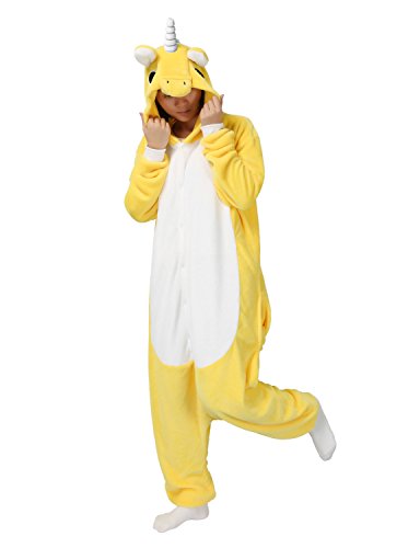 Très Chic Mailanda Pigiama Donna Uomo Animale Cosplay Animato Costume Camicie da Notte Carnevale Halloween (Altezza 168-178cm, Giallo Unicorno)
