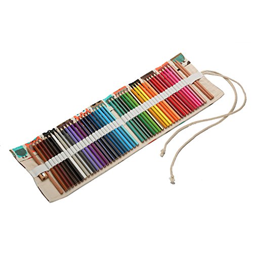 Très Chic Mailanda Sacchetto della Matita con 48 Buco Canvas Wrap per Matita per Studenti Ragazzi Ragazze Astucci in Boemo Porta penne(matite non incluse) (Gufo beige)