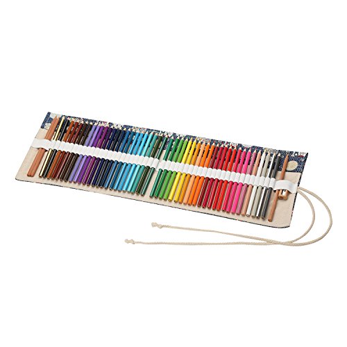 Très Chic Mailanda Sacchetto della Matita con 48 Buco Canvas Wrap per Matita per Studenti Ragazzi Ragazze Astucci in Boemo Porta penne(matite non incluse) (Gufo blu)