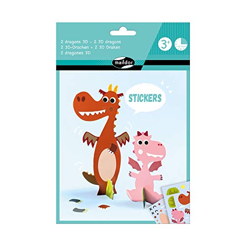 Maildor AF024C - Bustina Creativa ''Draghi 3D '' Che includono 2 Draghi da assemblare e Decorare + 3 Fogli di Adesivi 3D