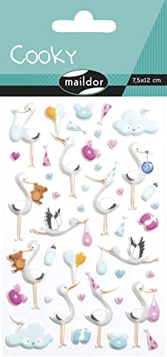 Maildor-Un Sachet de gommettes 3D Cooky 1 Planche 7,5x12cm, Naissance (41 Adesivi), Motivo Animale, Colore Assortiti, Small, CY108C