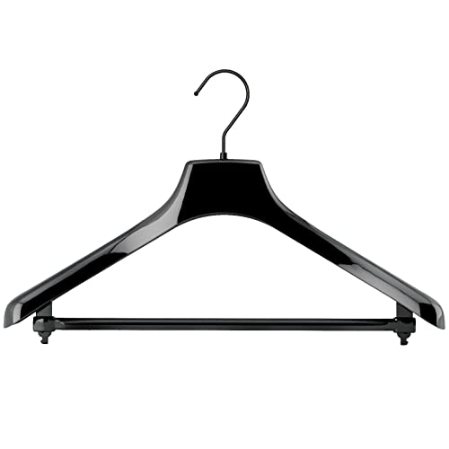 Mainetti Appendini per Capispalla, Cappotti, Abiti Pesanti, Grucce in Plastica, Resistenti, con Barra Porta Pantaloni, Made in Italy, Set di 10 Pezzi, Nero Lucido con Gancio Nero, Taglia 45cm
