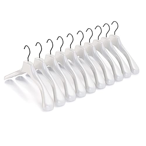 Mainetti Appendini per Capispalla, Cappotti, Abiti Pesanti, Grucce in Plastica, Resistenti, con Finitura Antigraffio, Made in Italy, Set di 10 Pezzi, Bianco Lucido con Gancio Nero, Taglia 42cm