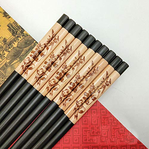 Mainiusi - Set di bacchette in legno con poggio, riutilizzabili, in legno naturale, con supporto per panda da 5 paia di stoviglie tradizionali cinesi per principianti, con confezione regalo