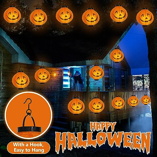 【Facile da usare】La lanterna è pieghevole e facile da trasportare. Devi inserire l'espansore specificato nelle lanterne di carta di Halloween ed espanderle con attenzione, e otterrai le adorabili lanterne, inserisci un paio di batterie AAA nelle lanterne e accendile (batterie non incluse) e accendi l'interruttore su attiva. Facile per completare l'installazione.C'è un gancio nella parte superiore della lanterna, può essere appeso all'albero o alla corda.