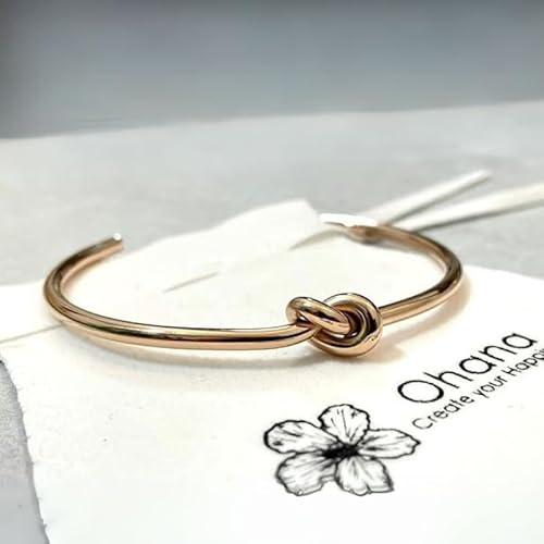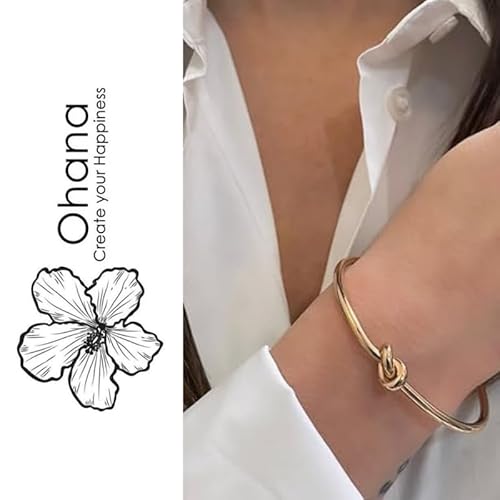 MAISON GIOIELLI FIRENZE - OHANA Bracciale Bangle con Nodo in Acciaio Placcato Oro, Bracciale Senza Chiusura Ipoallergenico Antigraffio e Waterproof (oro bianco)