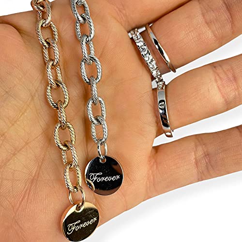MAISON GIOIELLI FIRENZE OHANA Bracciale Donna in Acciaio Placcato Oro 18K con Ciondolo Rotondo con Scritta Forever (Oro bianco)