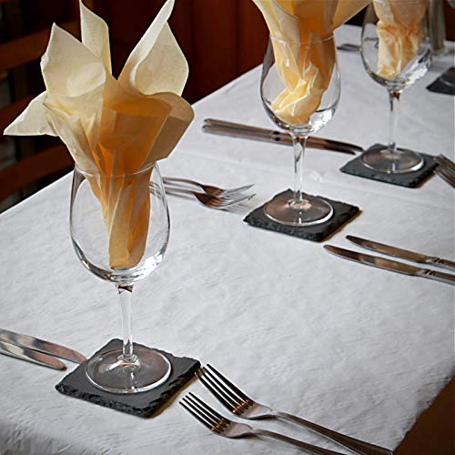 Maison & White Confezione di sottobicchieri in ardesia | Set quadrato fine taglio | Roccia naturale facile da pulire resistente al calore | Base antiscivolo (8)