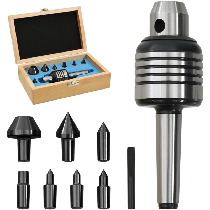 I pezzi lunghi, sottili e pesanti possono essere lavorati in modo sicuro e preciso con questo set di contropunte che include 7 teste sostituibili. Con l'aiuto del posizionamento del foro centrale, i pezzi hanno un'elevata precisione dimensionale. Questo set di contropunte MT2 � realizzato in acciaio resistente al calore con elevata durezza, alta precisione e resistenza alla corrosione. Questo set offre anche un massimo di 3000 giri/min e 200 kg di carico massimo. Con 7 teste intercambiabili, questo set di dispositivi vi offre pi� scelte e vi consente di lavorare sui pezzi con dettagli delicati. Inoltre, la consegna include una scatola portaoggetti con rivestimento anti-collisione per un facile stoccaggio e trasporto. Colore: Nero e argento Materiale: Acciaio Cr 40 Modello: MT2 Velocit� massima: 3000 rpm Carico massimo: 200 kg Fuoriuscita: 0,02-0,04 mm Angolo punta: 60 Lunghezza centro (con punta): 17 cm, 17,5 cm, 16,5 cm, 16 cm Diametro centro: 4,6 cm La consegna include: 1