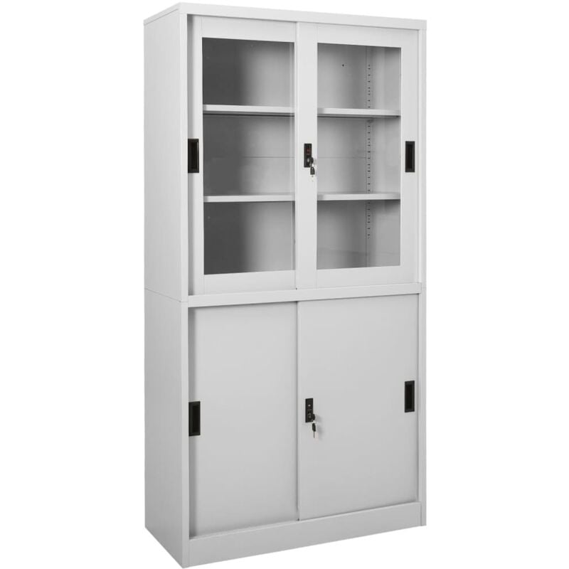 Liberatevi di tutto il disordine in ufficio con questo armadietto! L'armadio è realizzato in acciaio e vetro temperato, il che lo rende estremamente robusto e durevole. La porta scorrevole garantisce un'apertura e una chiusura fluide. Con 3 ripiani regolabili, questo schedario vi consente di ordinare ordinatamente i vostri file in diverse categorie. Lo schedario dispone anche di serrature per proteggere i vostri documenti personali da ospiti indesiderati. Colore: Grigio chiaro Materiale: Acciaio, vetro temperato Dimensioni: 90 x 40 x 180 cm (L x P x A) Numero di ripiani: 3 (regolabili) Dispone di 4 ante scorrevoli Include serrature Peso massimo supportato per ripiano: 30 kg Capacità di carico totale: 150 kg Assemblaggio richiesto: Sì ATTENZIONE: Per evitare il ribaltamento questo prodotto deve essere utilizzato con il dispositivo di fissaggio a parete fornito. Legal Documents: Maggiori dettagli su come evitare il rovesciamento dei mobili sono disponibili qui SKU: 335963