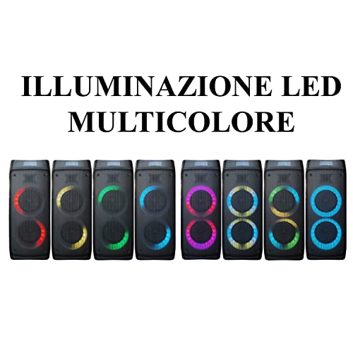 Majestic TS 200 BT USB AX - Sistema audio multimediale Bluetooth, con luci LED, ingressi USB/Micro SD/AUX-IN/Microfono/chitarra, telecomando, funzione TWS, Batteria ricaricabile
