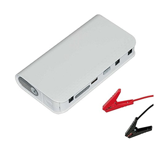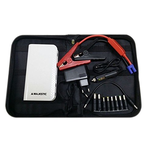 Majestic CPB 120N - Car Jump Starter (avvia batteria auto) e power bank 9900mAh, valigetta con pinze per batteria, alimentatore, cavo plug-in 12volt, adattatori per PC, Bianco