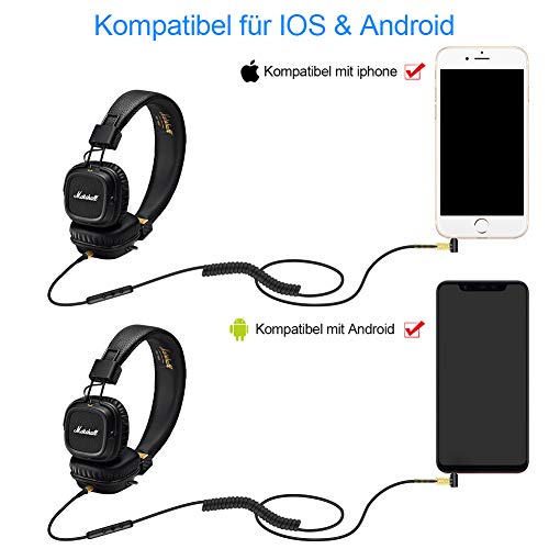 Major II - Cavo di ricambio per cuffie Bluetooth Marshall Monitor/Major II/Major III/MID, cavo di prolunga audio stereo avvolto con microfono remoto e controllo del volume