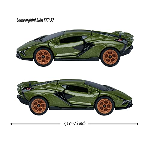 Majorette 212053152Q03 Deluxe Lamborghini Sian, auto giocattolo, ruota libera, 2 pezzi da aprire, scatola di raccolta, pneumatici in gomma, 1:64, 7,5 cm, verde/oro, per bambini dai 3 anni in su