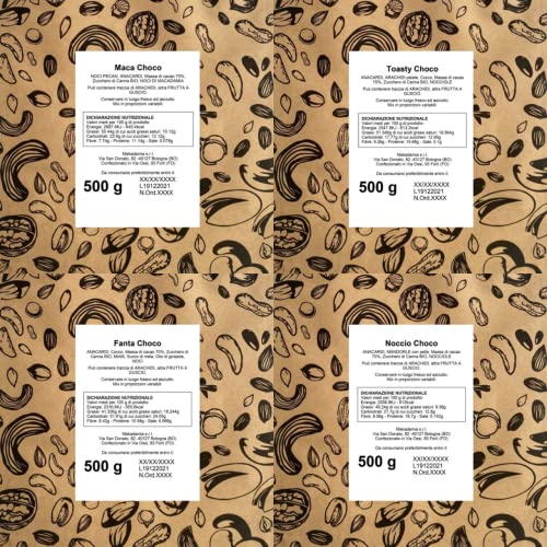 Makadamia - Bundle Choco Mix Modica 500g - Maca Choco, Toasty Choco, Noccio Choco, Fanta Choco, Anacardi Ricoperti 100g, Porta Snack taglia L